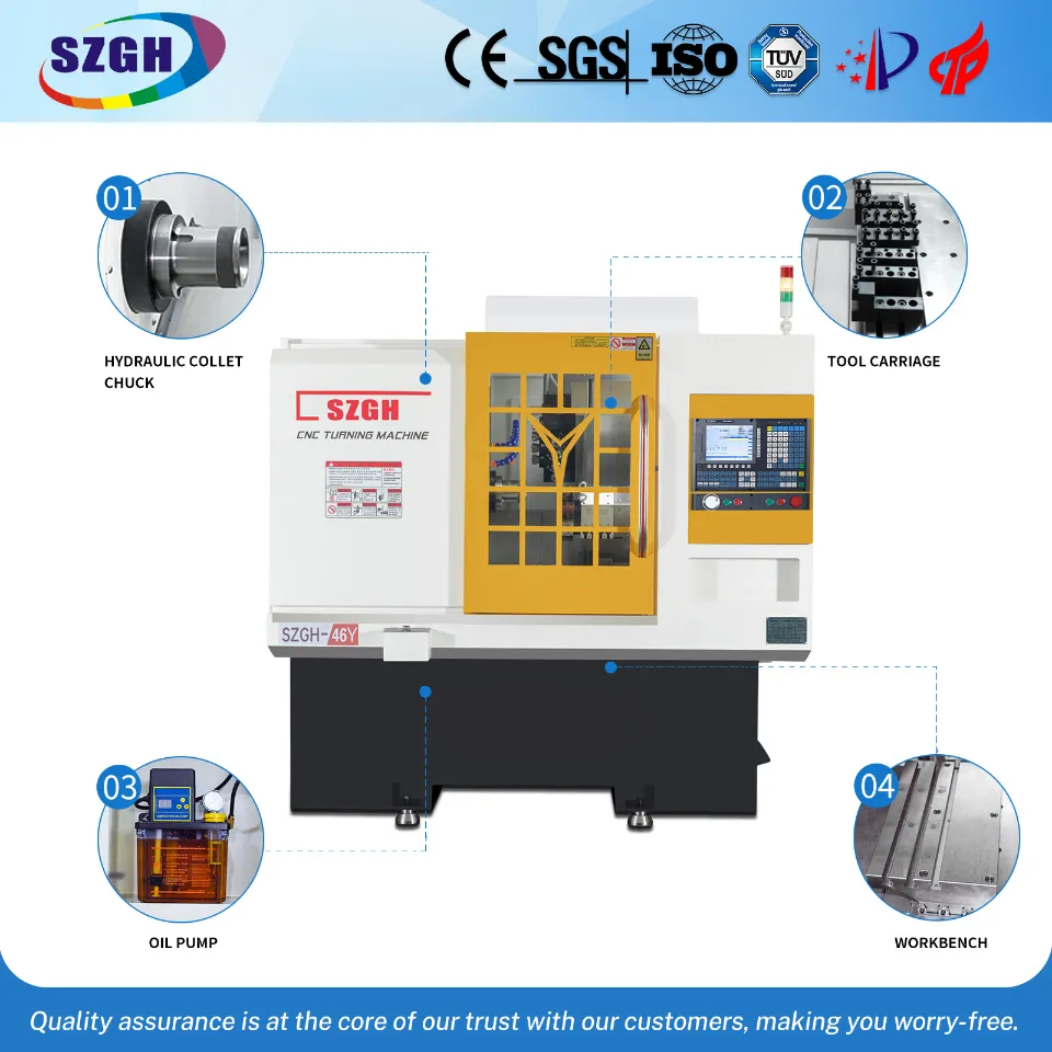 La máquina CNC de torneado y fresado SZGH-46Y está diseñada para fabricantes que buscan una solución multitarea CNC fiable y de alto rendimiento, con precisión estable, capacidad de mecanizado flexible y valor a largo plazo. Diseñada y fabricada por Shenzhen Guanhong Technology Co., Ltd. (SZGH), un proveedor confiable de máquinas CNC, la SZGH-46Y ofrece un rendimiento constante y fiable en operaciones de torneado y fresado, sin el elevado costo asociado a marcas como Mazak, DMG MORI o Haas.